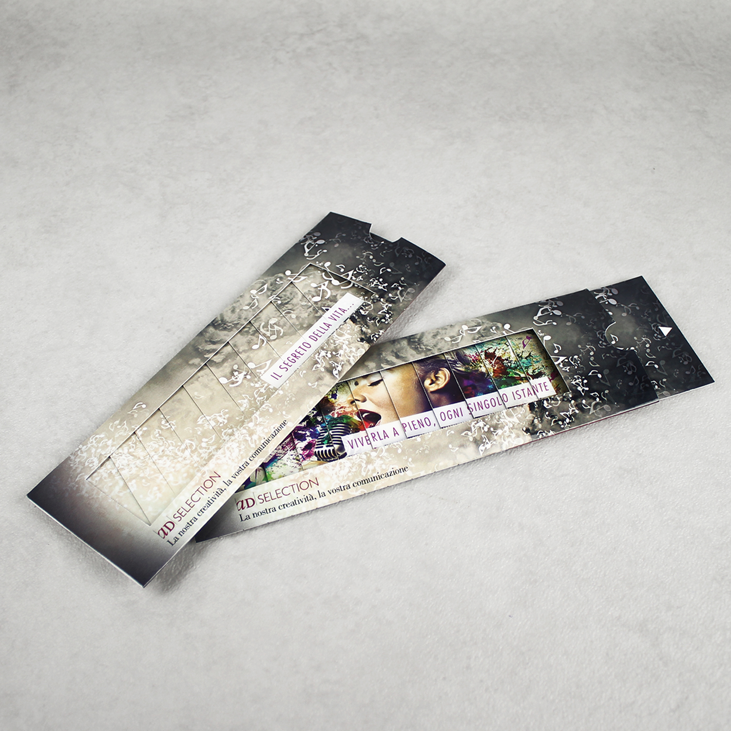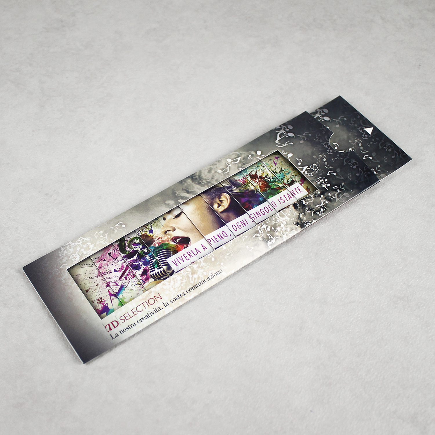 È una combinazione di immagini sovrapposte, ingegnosamente combinate; grazie allo scorrimento delle finestrelle multiple del frontpage, B-Scroll permette di svelare un secondo messaggio tirando la linguetta a lato del folder, e di ritornare al messaggio precedente spostandola nuovamente nella posizione originaria. Utilizzabile come gradevole e piacevole segnalibro, come un righello sempre pronto all’uso e per un messaggio dinamico sempre in vista.
