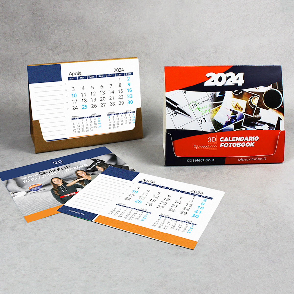 Disponibile in carta FSC o carta Kraft, per una comunicazione più ecologica, con 12 o 14 fogli stampati fronte/retro in quadricromia.
