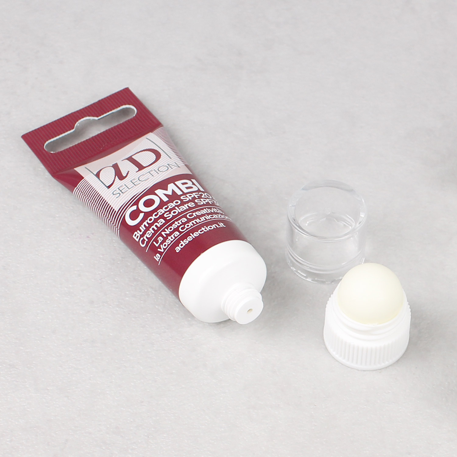 Tubetto 2in1 pensato per la tua idratazione quotidiana! Contiene 20 ml di crema mani e balsamo labbra, facili da usare grazie al doppio tappo a vite. Disponibile anche con crema solare o doposole in alternativa alla crema mani. Il tubetto ha un pratico foro per essere agganciato a lanyard, zaini o borse e poterlo portare sempre con sè!