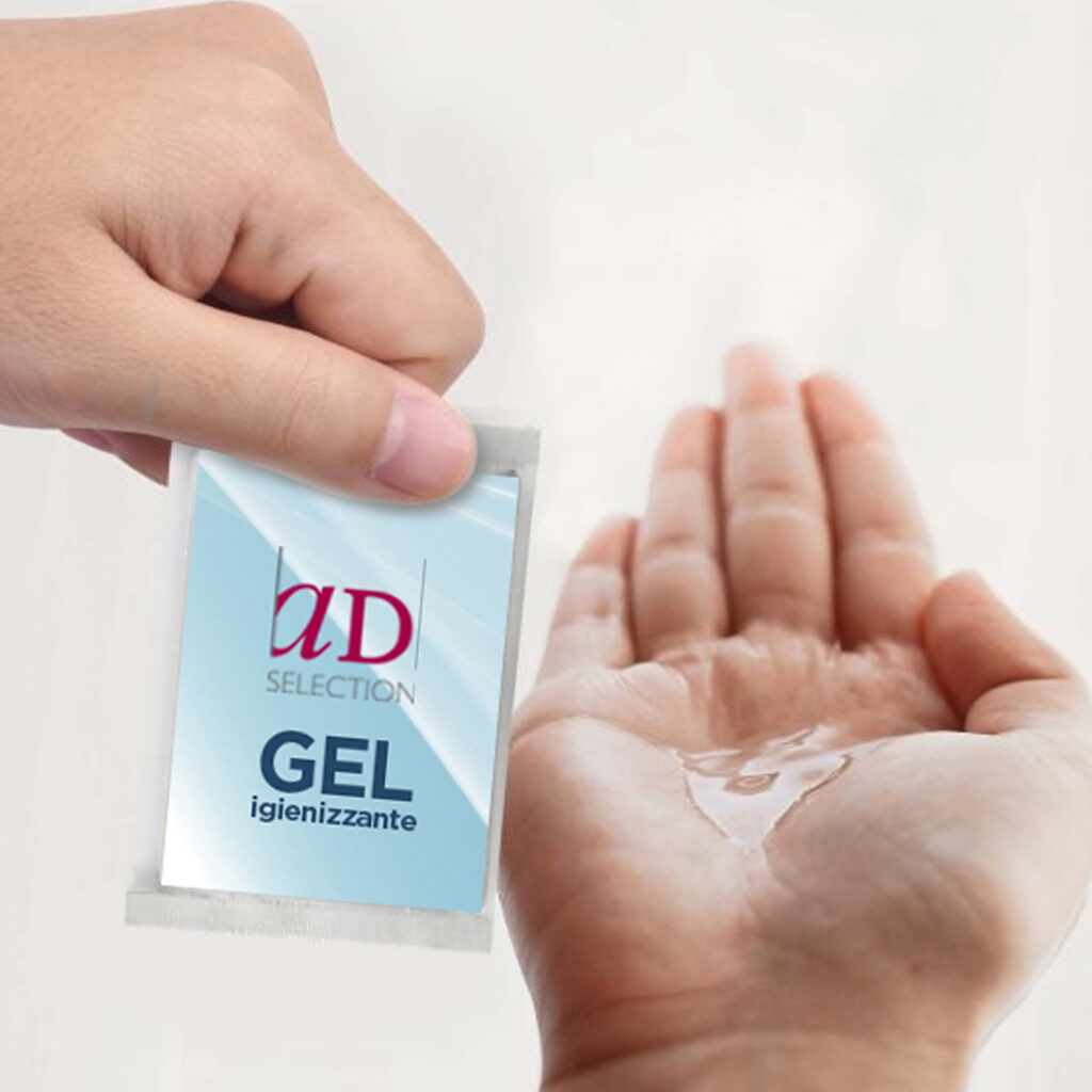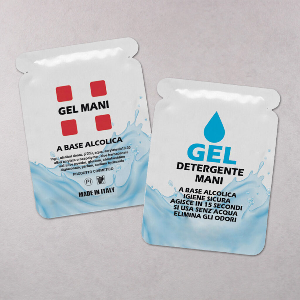 Bustina monodose contenente gel igienizzante. La sua praticità e utilità sono indiscutibili.