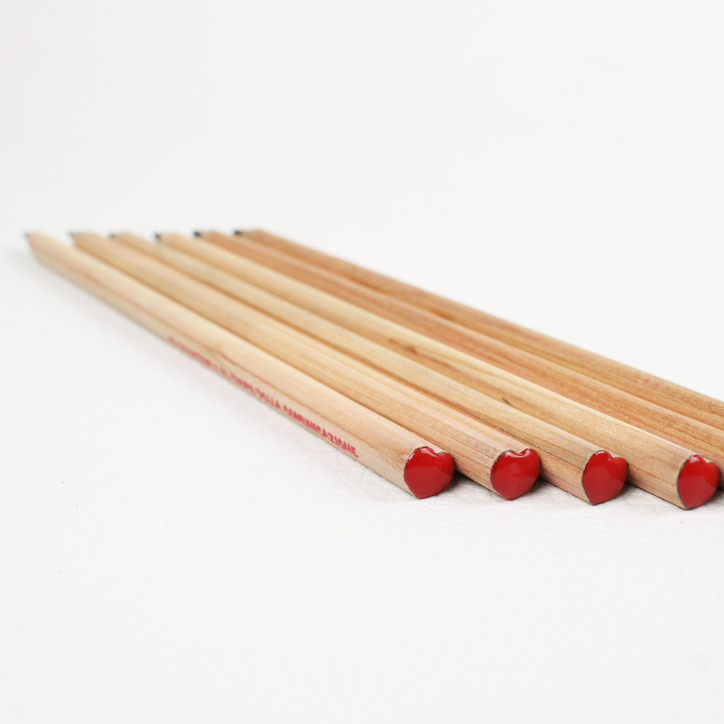Matita pratica ed ergonomica, ma dalla forma fuori dal comune. Personalizzabile a 1 colore, il fusto in legno grezzo è intagliato a forma di cuore, per comunicare un messaggio davvero particolare.