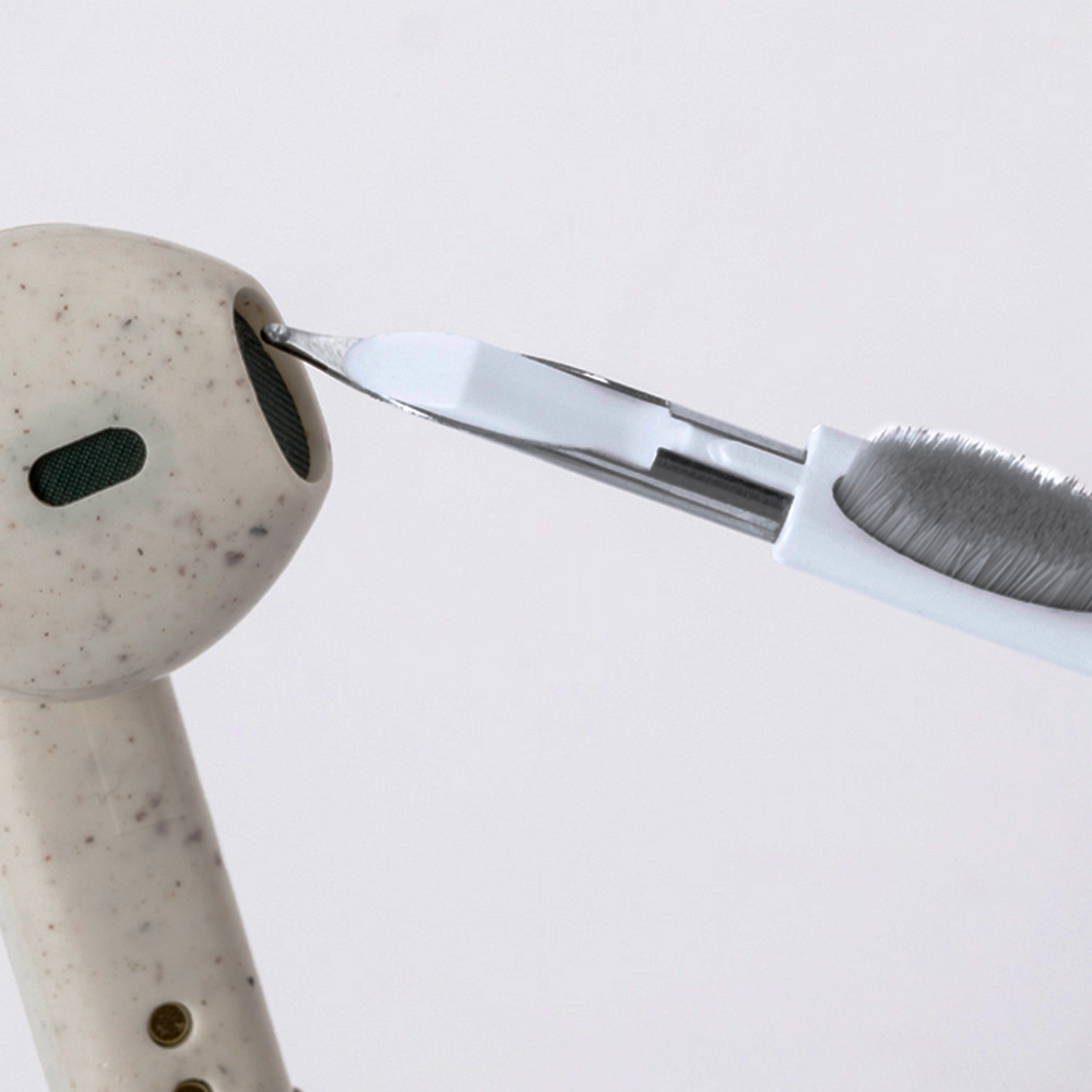 Include punta metallica per le parti più piccole, spazzolina e spugna per pulire anche la custodia di ricarica, oltre che puntale per gli schermi touchscreen.