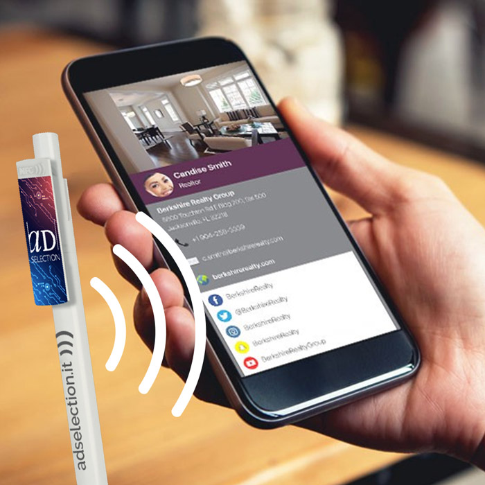 Potrai raggiungere i tuoi clienti e contatti più facilmente condividendo con loro il tuo sito, i tuoi biglietti da visita, cataloghi, brochure, documenti di vendita, URL a pagine web o social e video di prodotti o filmati aziendali, tutto in formato digitale, solo avvicinando la penna allo smartphone (con NFC) o scansionando il QRcode.