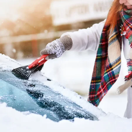Raschiaghiaccio con spatola e spazzola integrate.