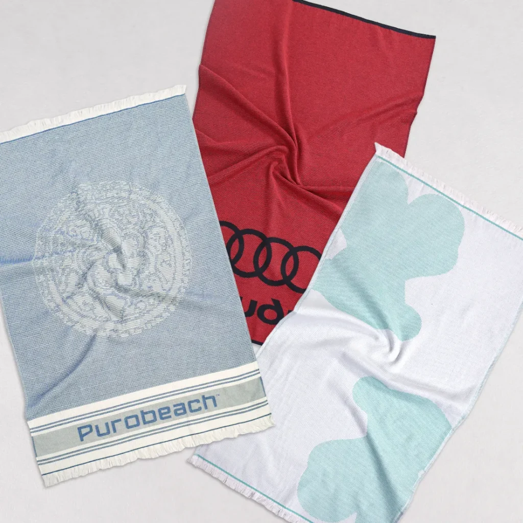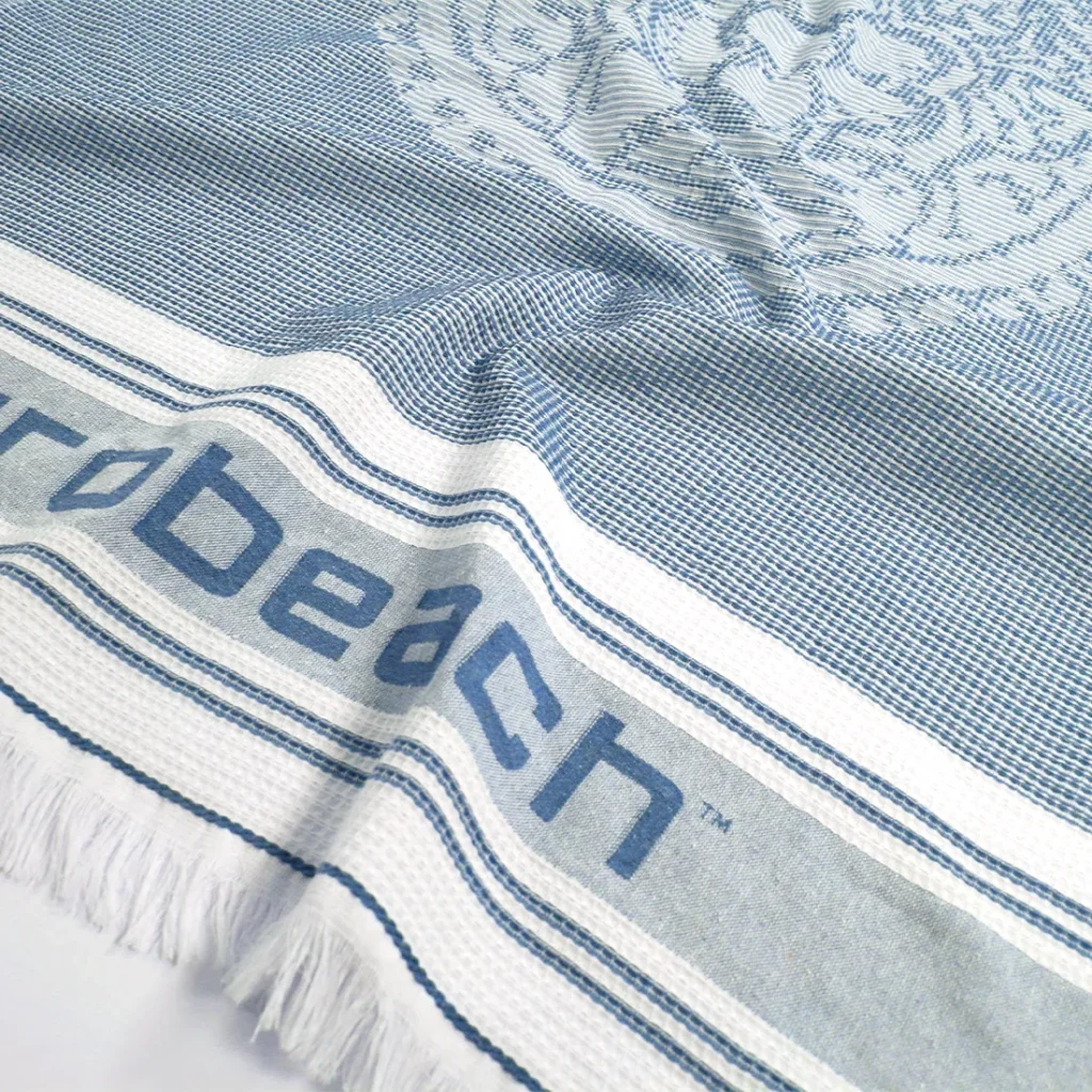Telo mare e pareo personalizzato a rilievo con tecnica jacquard.