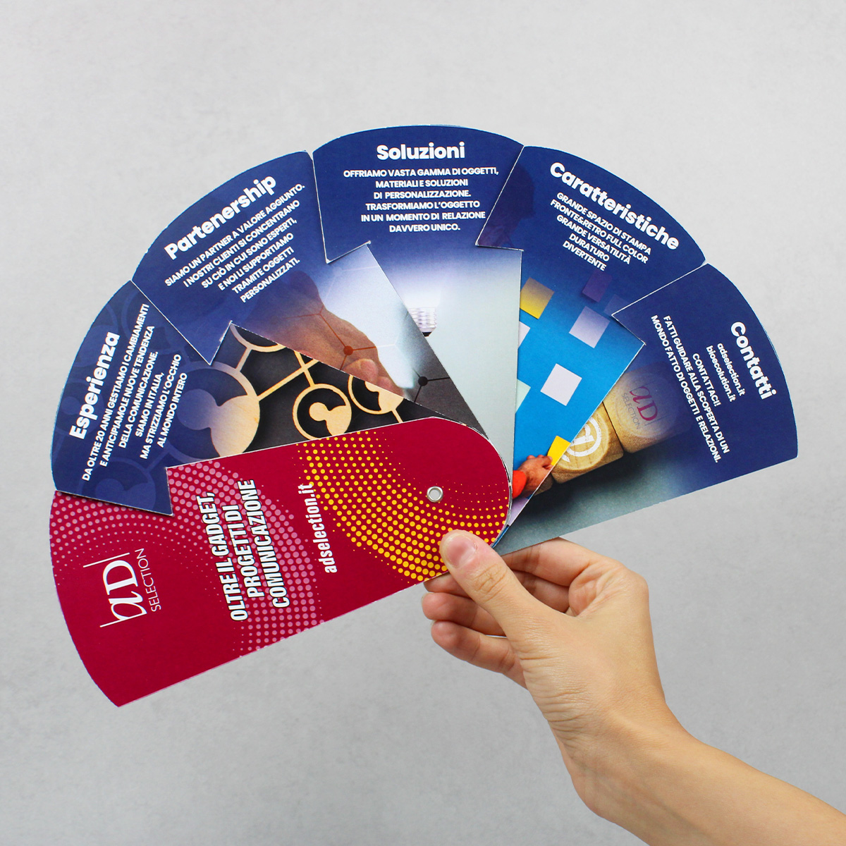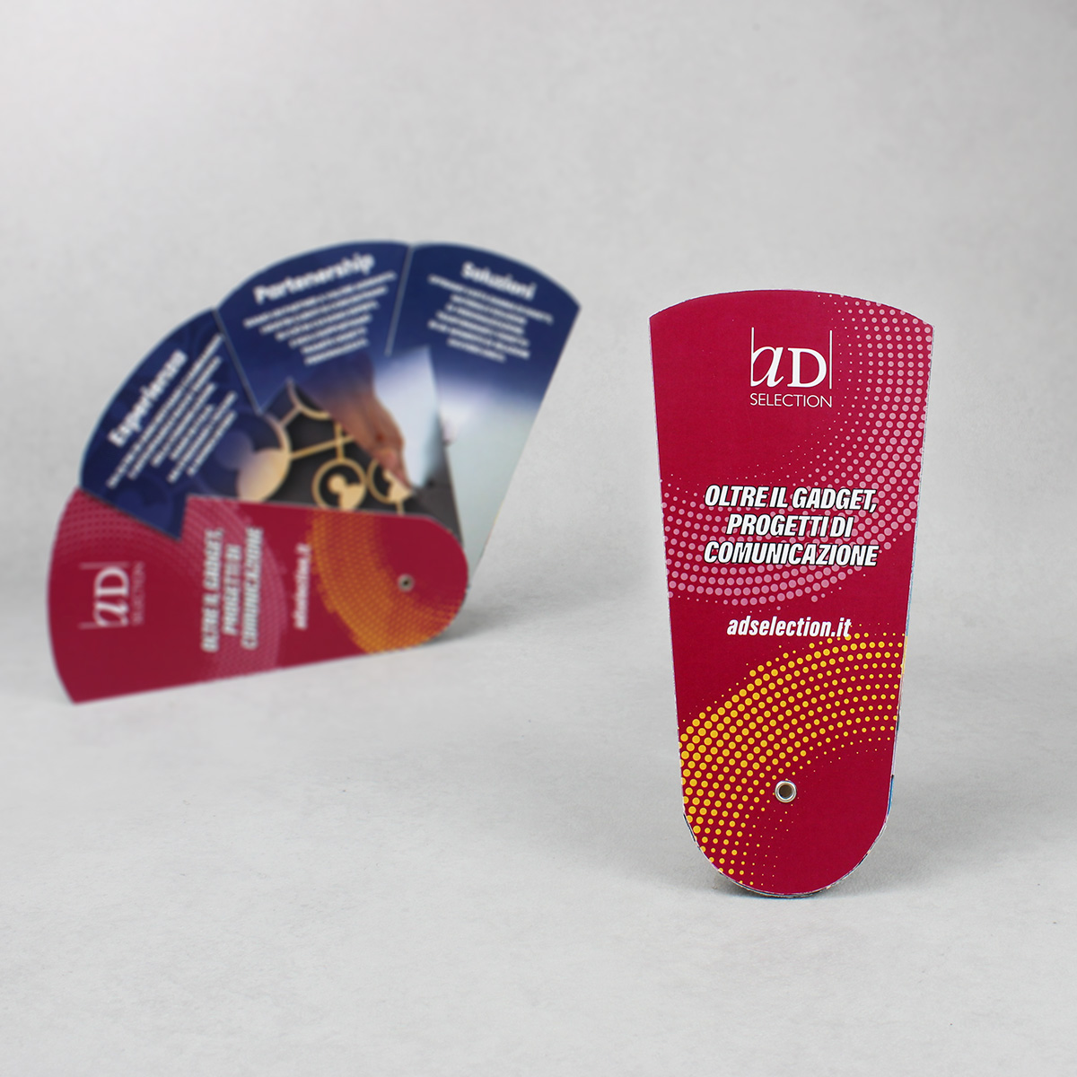 Ventaglio multiuso completamente personalizzabile ideale per una comunicazione multi-brand o multi-messaggio.