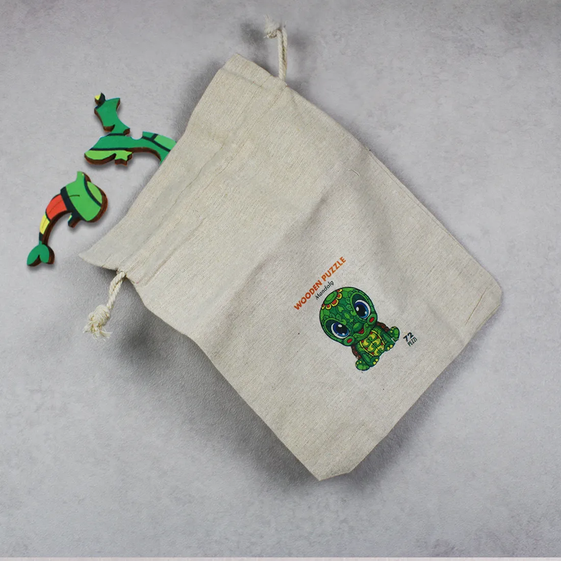 Stampa full color, viene confezionato in un sacchetto di cotone personalizzabile anch’esso.