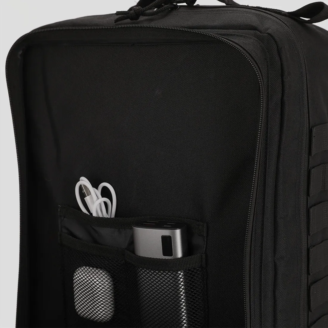 Zaino da viaggio in resistente poliestere RPET 600D.