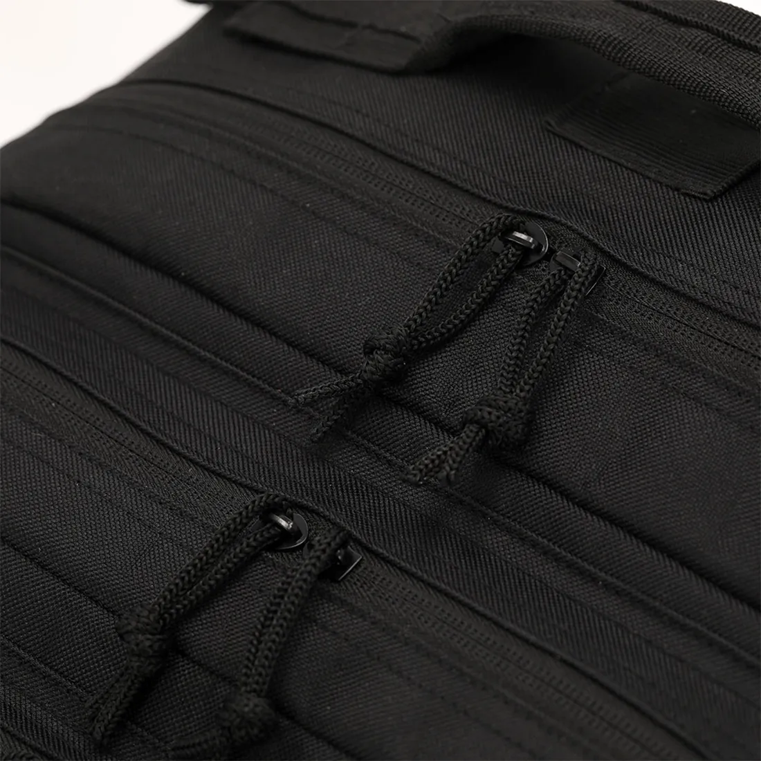Design tattico con molteplici tasche, oltre a supporti elastici e velcro per appendere gli accessori necessari durante l’avventura.